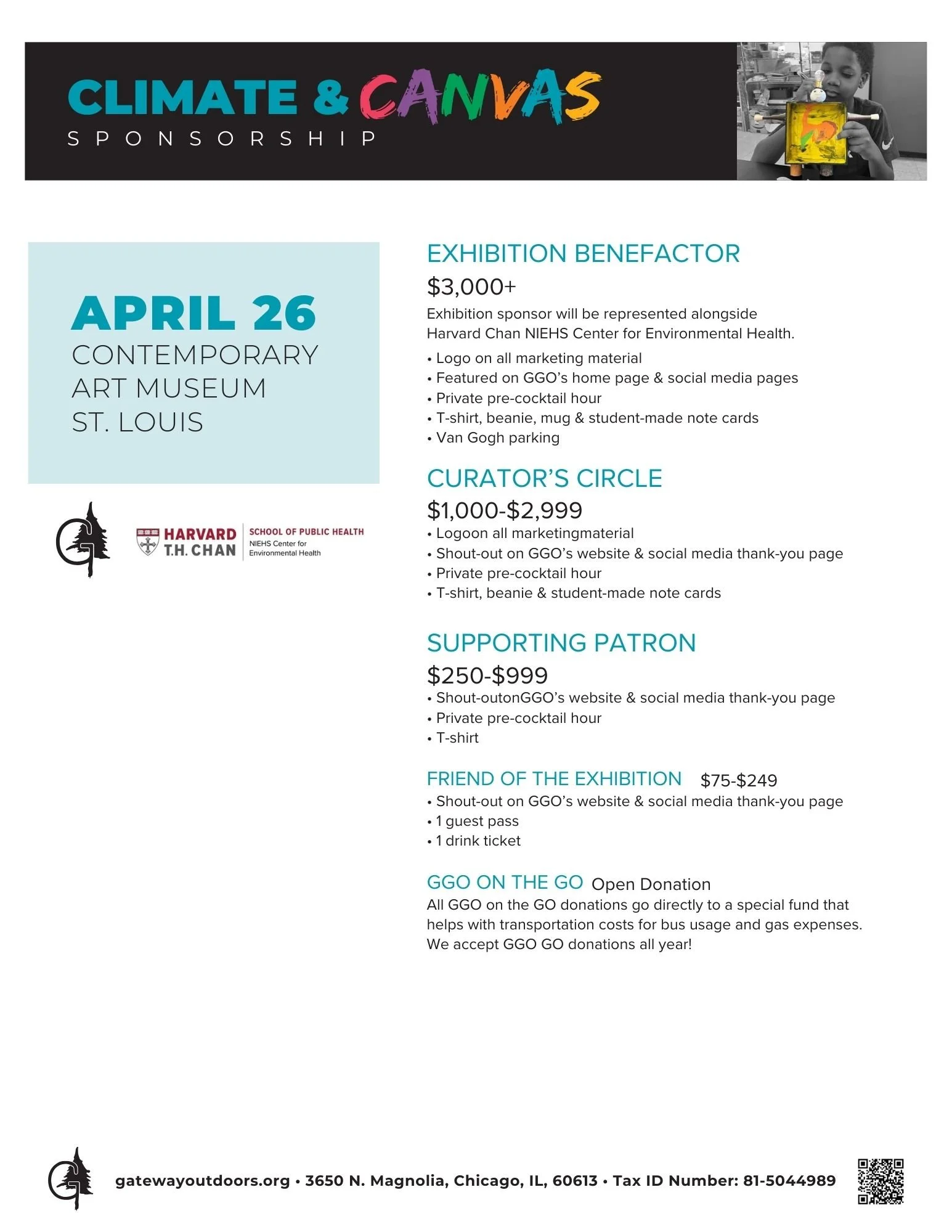 This event is made possible through community partnerships and sponsorships, which support both the Climate & Canvas program and future opportunities for students to engage with environmental learning through the arts. By becoming a sponsor, you help provide the resources that allow students to explore climate education in creative and meaningful ways while sharing their work with the broader community.